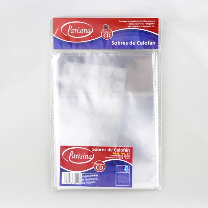 Caja con 50 paquetes de Bolsa de Celofán 11.5 x 15 cm solapa 5cm PAC-17 CD con 25 pzs c/u
