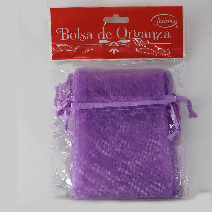 Caja con 30 paquetes de Bolsa de Organza Parisina Lila 9 x 12 cm con 6 pzs c/u