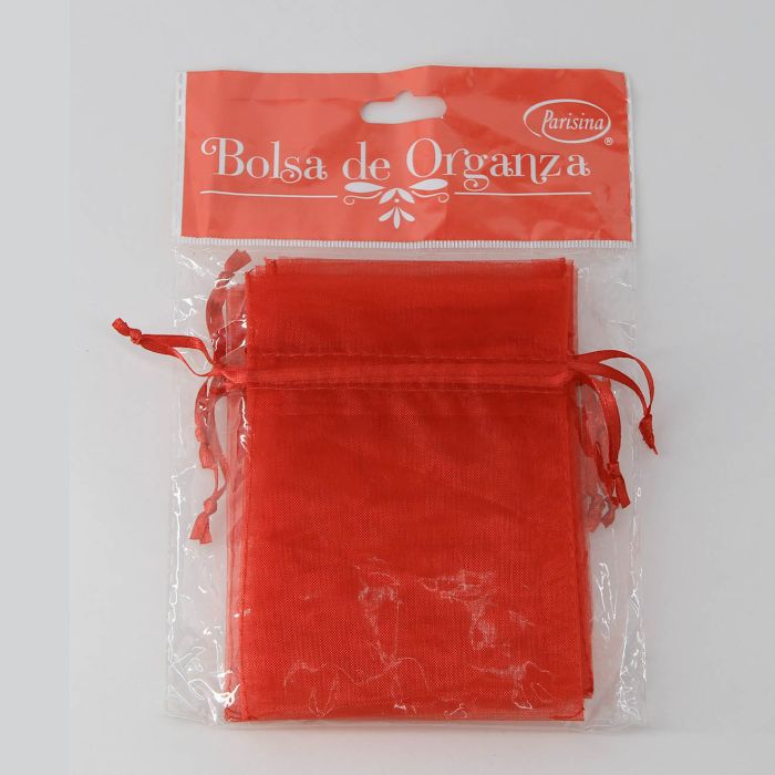 Caja con 30 paquetes de Bolsa de Organza Parisina Rojo 9 x 12 cm con 6 pzs c/u