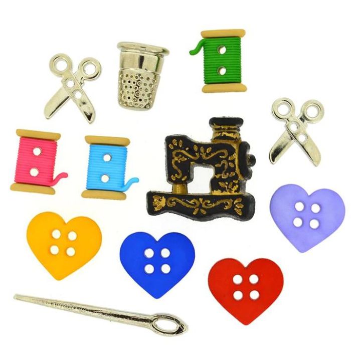 Botones de plástico coordinando formas y colores, así como diferentes temas. Algunos son para coser ya sea con orificios o con pata en la parte trasera. Otros son únicamente para pegar. Duraderos, no se despintan ni se destiñen.