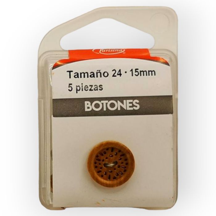 8 Paquetes de Botones en Cajita 15 mm Madera Natural Mod.1552428 con 5 piezas c/u