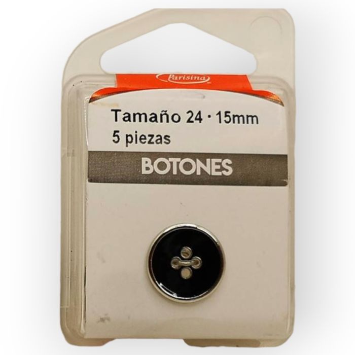 8 Paquetes de Botones en Cajita 15 mm Negro Mod.1602402 con 5 piezas c/u