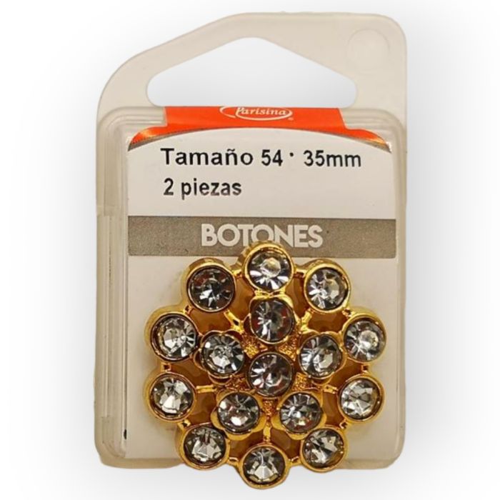 4 Paquetes de Botones en Cajita 35 mm Oro-Diamante Mod.1413581B con 2 piezas c/u