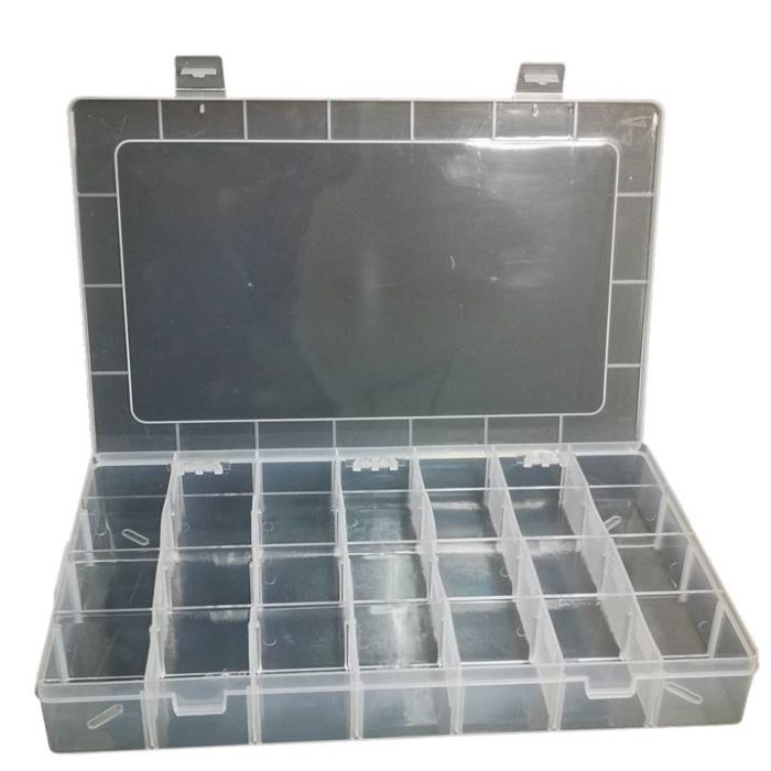 Organizador con 28 compartimentos separables, hecho de material plástico de calidad
