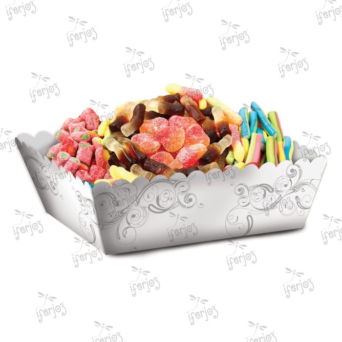 25 Paquetes de Charola Curly Multicolor Tamaño:20.6 x 13.8 x 4 cm con 6 piezas c/u
