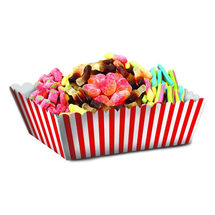 Charolas rectangulares ideales para cualquier tipo de fiestas y mesas de dulces. Hechas en cartulina resistente y decoradas con diseños versátiles de combinar.