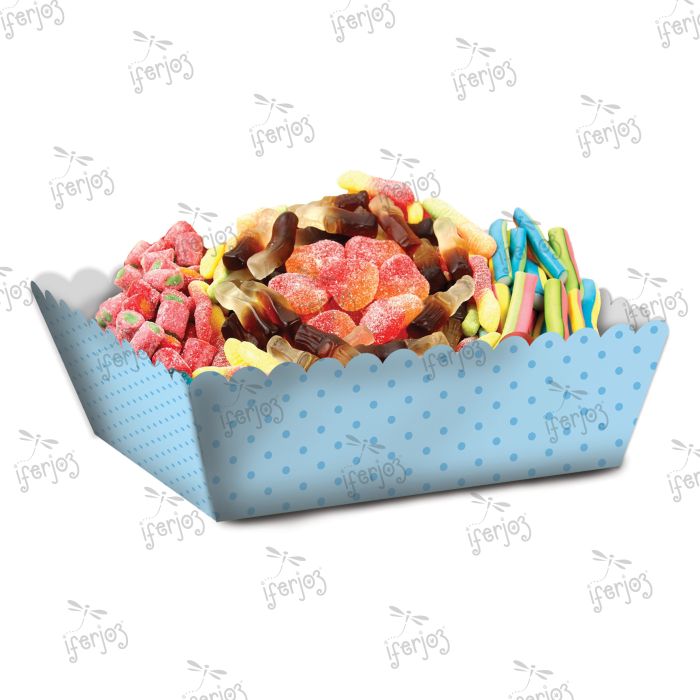 25 Paquetes de Charola Puntos Azul Cielo Tamaño:20.6 x 13.8 x 4 cm con 6 piezas c/u