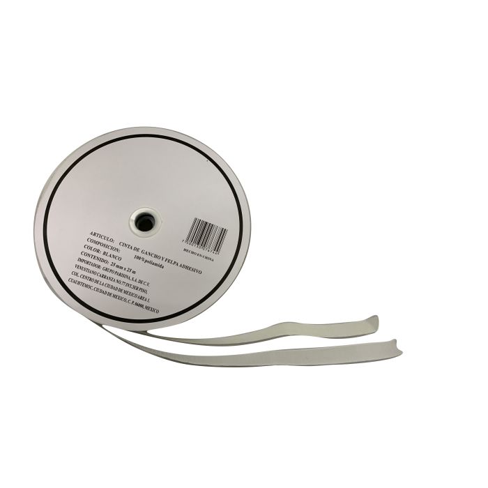 Rollo con 25 metros de Cinta de Gancho y Felpa Blanco 25 mm Con adhesivo