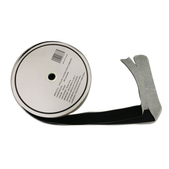 Rollo con 25 metros de Cinta de Gancho y Felpa Negro 50 mm Con adhesivo