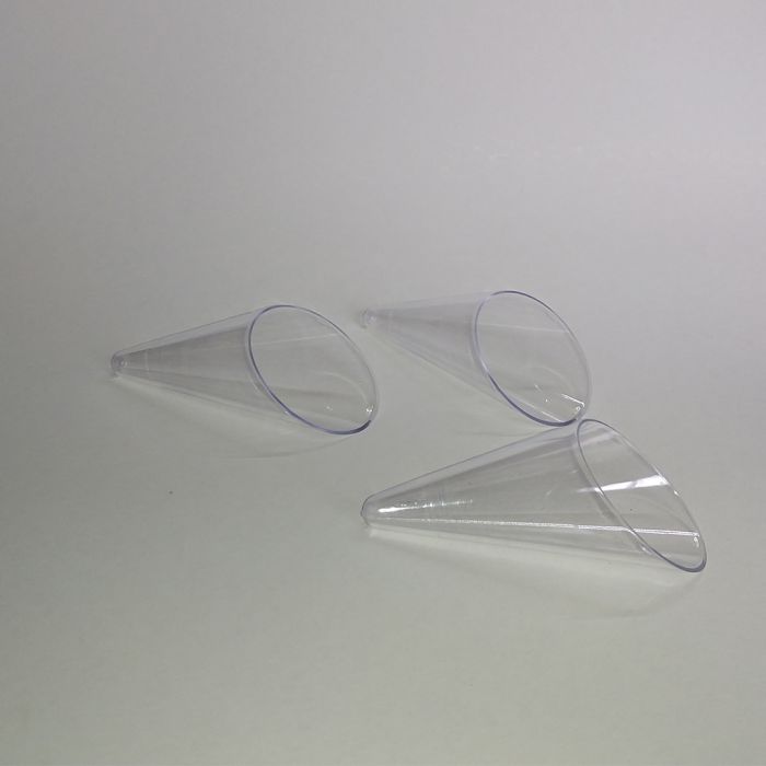Caja con 20 Paquetes de Cono de plástico Transparente Tamaño:Chico 9.5 cm