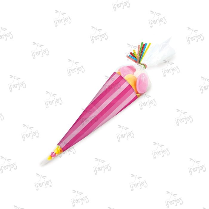 75 Paquetes de Conos Líneas Fiusha Tamaño:13.3 x 24 cm con 10 piezas c/u