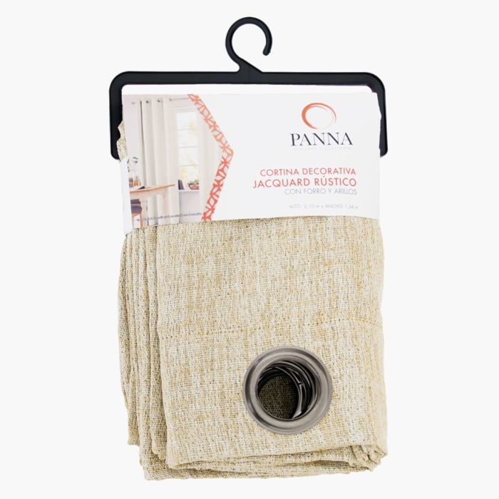 2 Piezas de Cortina Decoración Jacquard Rustico con Forro y Arillos Sólido Café Beige Tamaño: 2.10 m X 1.34 m