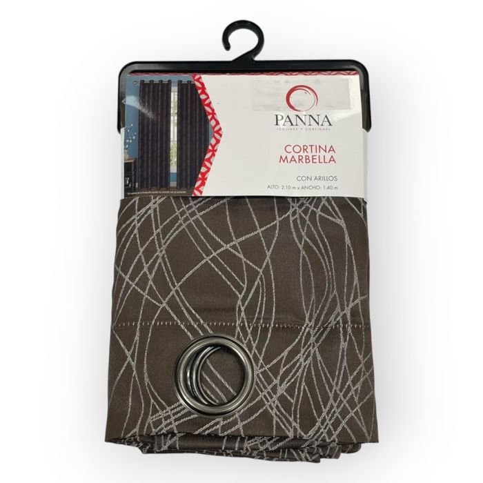 Descripción / Cortina Jaquard Abstracto Marbella Arillos Café Chocolate