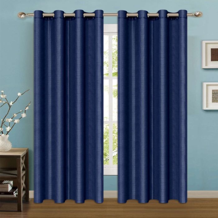 Cortina Jaquard Marbella Azul Marino Pantalla 210cm x 140cm Arillos. Enmarca las ventanas, brinda privacidad y permite disfrutar el paso de luz natural.