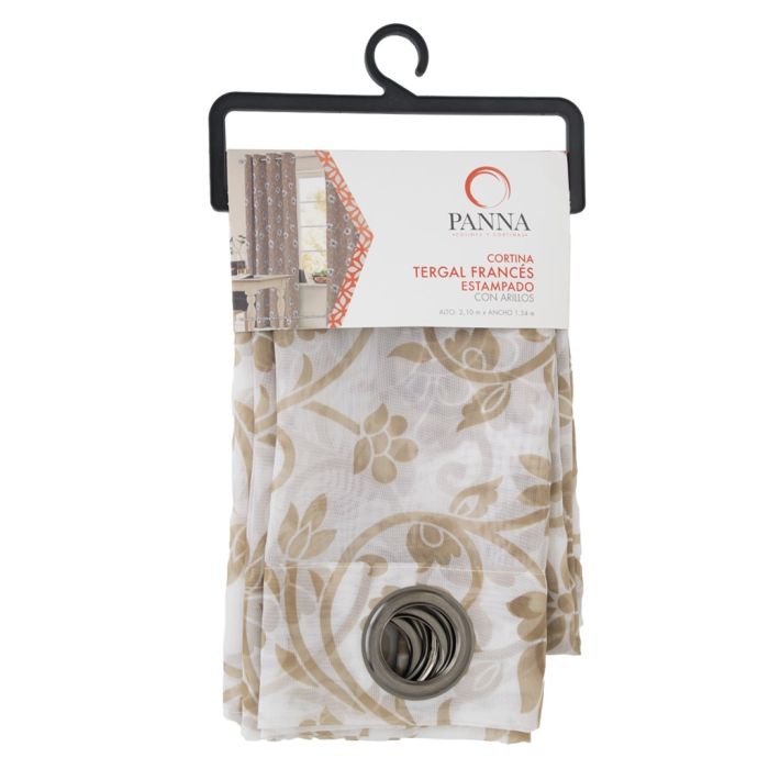 4 Piezas de Cortina Tergal Frances Estampado Flores Beige Tamaño: 2.10 m X 1.34 m