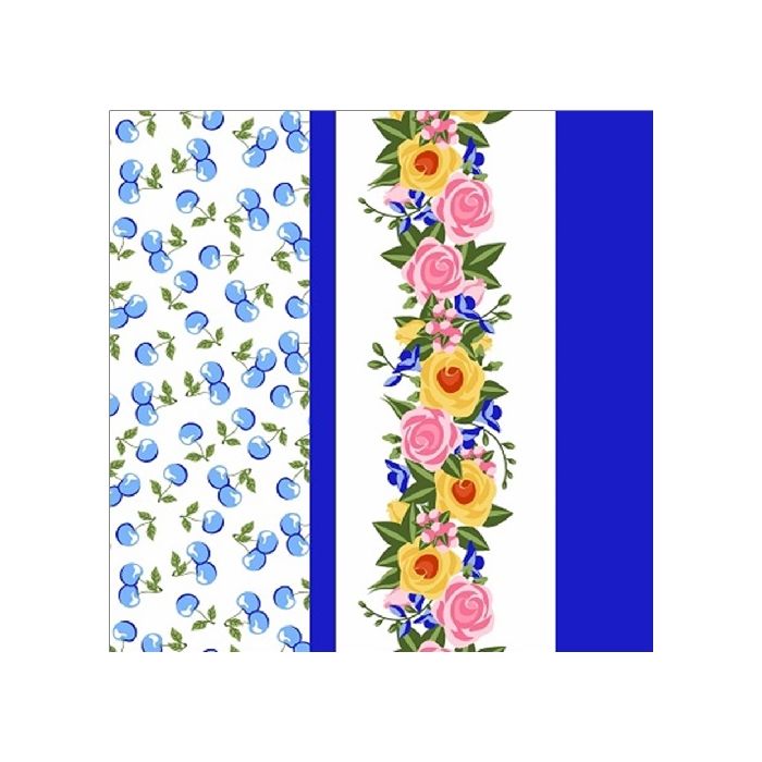 Paquete o Rollo de Cortina Tergal Zurich Flores Cerezas Azul Rey