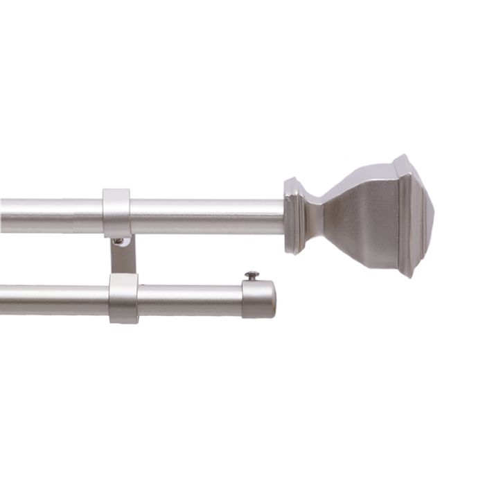6 Cortineros Decorativos Doble Panna Ball 16 mm 168 - 305 cm Plata . Cada paquete contiene: 4 Tubos Extensibles, 2 Cabezales de 2 tapas y 3 Herrajes para montaje
