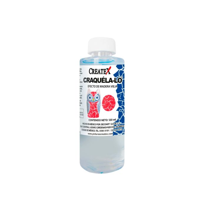 Resina transparente que se aplica como barniz encima de una capa de pintura acrílica que contraste y al secar dará un efecto de craquelado con grietas del color de la pintura acrílica aplicada debajo en cualquier superficie.