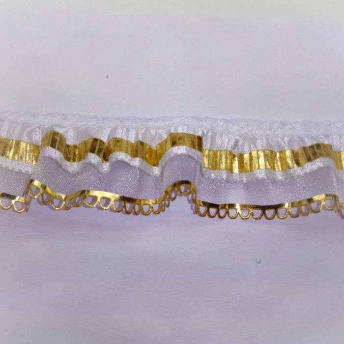 2 Rollos de Encaje Con Cinta Troquelada Plisada T-2374 Blanco con 25 metros c/u Ancho:3.2 cm