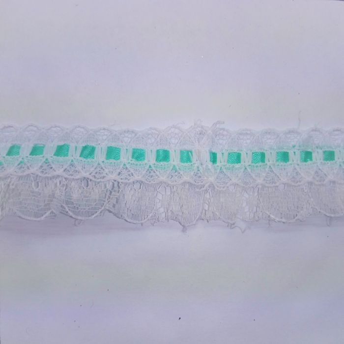 2 Rollos de Encaje Con Pasalistón 4-2519 Menta con 25 metros c/u Ancho:2.8 cm