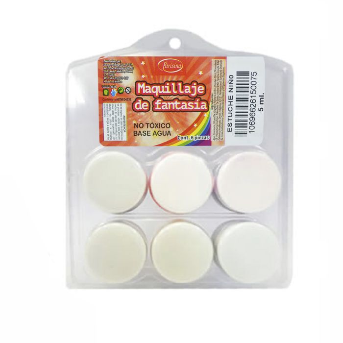 Maquillaje infantil hecho a base de agua y ceras adicionadas, libre de metales, con gran poder cubriente y no toxico.