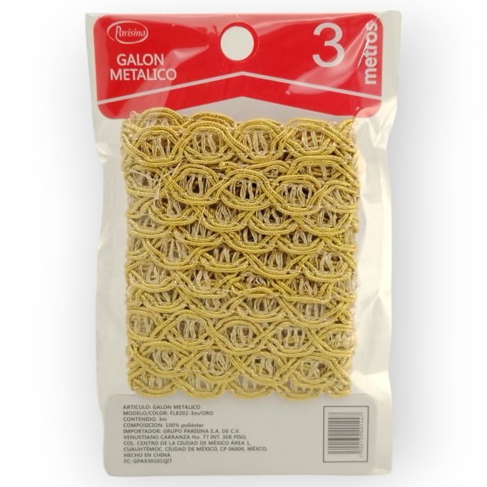 Descripción / Galón Metálico de 3 m Oro Fl8202