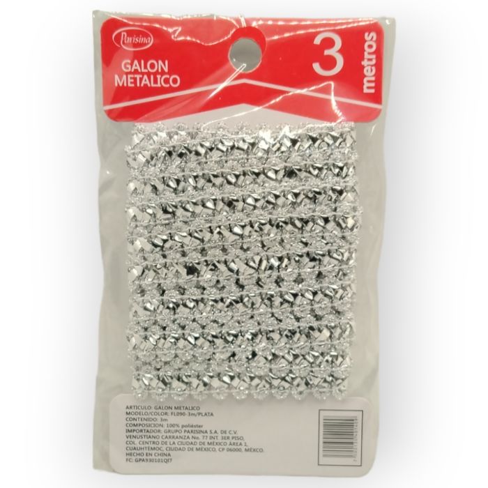 Descripción / Galón Metálico de 3 m Plata Fl090