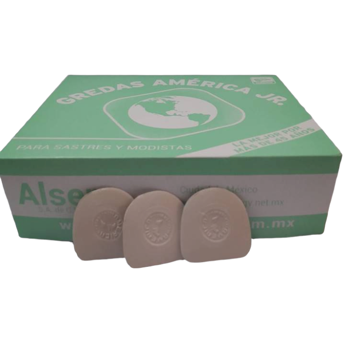 Greda ó tiza para sastre ó modista, elaborada de arcilla, para trazos sobre cualquier tipo de tela. Fácil de borrar, y no deja marcas.