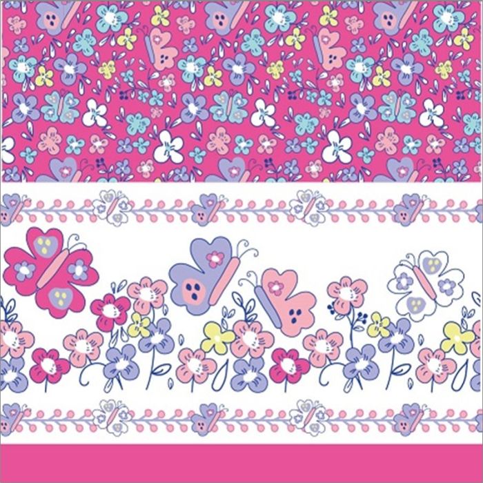 Paquete o Rollo de Jamaica Cenefas Mariposa Flor Rosa Fiusha.