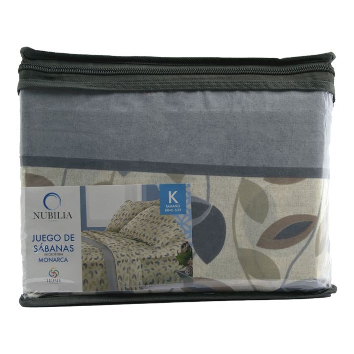 2 Piezas de Juego De Sabanas Monarca Estampadas Microfibra Aria Gris Perla king size . Cada paquete contiene: 2 sábana encimera: 2.50 m x 2.31 m, 1 sábana cajón: 2.05 m x 1.95 m y 2 fundas de almohada: 45 cm x 70 cm