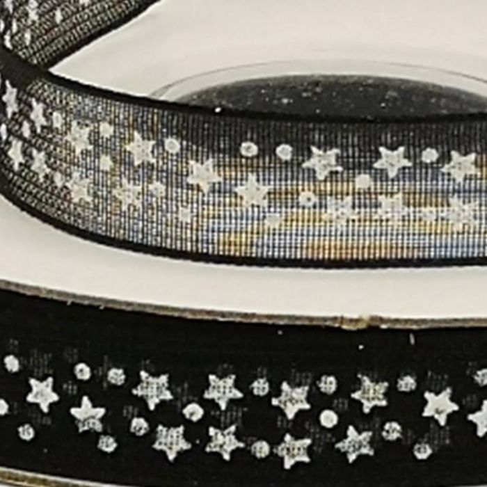 4 Rollos de Listón De Organza Con Estrellitas Negro #1.5 9 mm 25 mts c/u