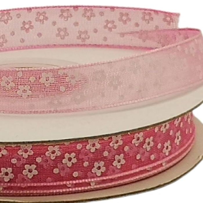 4 Rollos de Listón De Organza Con Florecitas Fiusha #1.5 9 mm 25 mts c/u