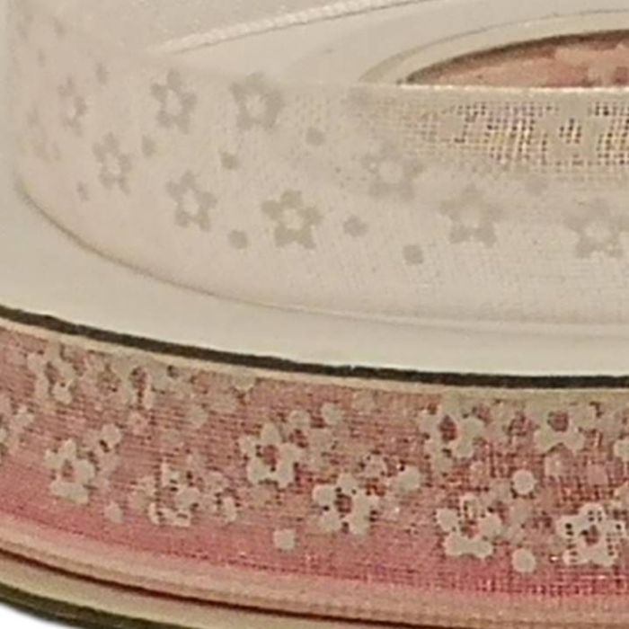 4 Rollos de Listón De Organza Con Florecitas Rosa #1.5 9 mm 25 mts c/u