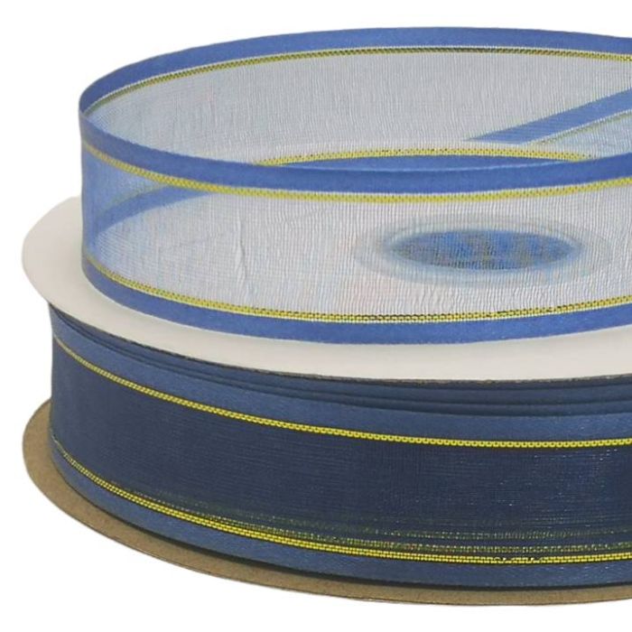 2 Rollos de Listón de Organza con Orilla Metálica Azul Marino-Oro #5 con 50 m c/u Ancho:22 mm