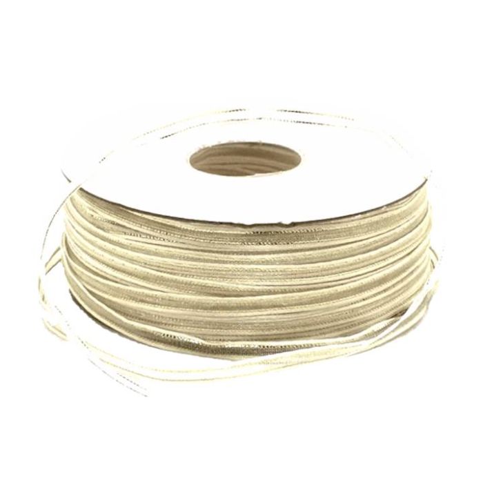 Rollo de Listón de Organza con Orilla Metálica Blanco-Oro #0 con 100 m Ancho:4 mm
