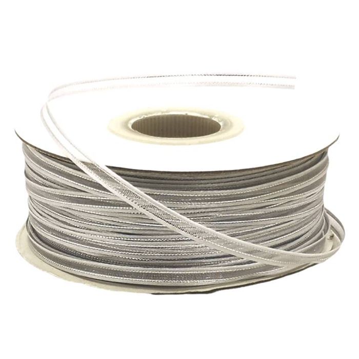 Rollo de Listón de Organza con Orilla Metálica Blanco-Plata #0 con 100 m Ancho:4 mm