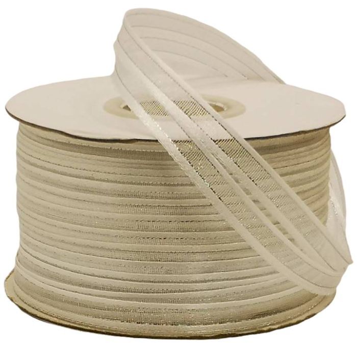 Rollo de Listón de Organza con Orilla Metálica Blanco-Plata #1 con 100 m Ancho:6 mm
