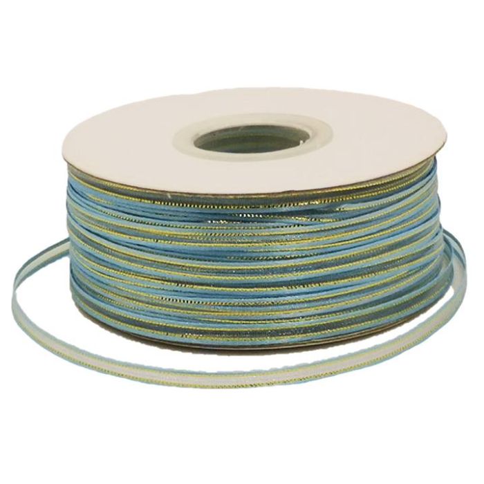 Rollo de Listón de Organza con Orilla Metálica Cielo-Oro #0 con 100 m Ancho:4 mm