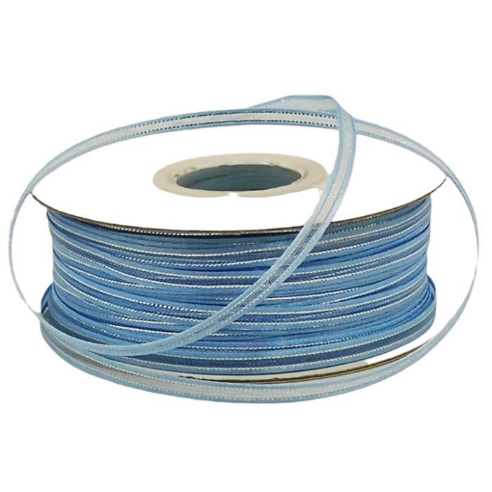 Rollo de Listón de Organza con Orilla Metálica Cielo-Plata #0 con 100 m Ancho:4 mm