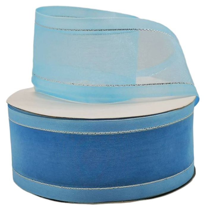 2 Rollos de Listón de Organza con Orilla Metálica Cielo-Plata #12 con 50 m c/u Ancho:50 mm