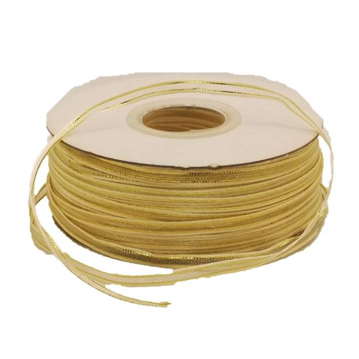 Rollo de Listón de Organza con Orilla Metálica Crema-Oro #0 con 100 m Ancho:4 mm
