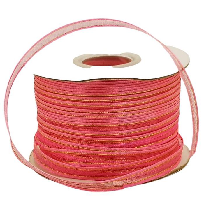 Rollo de Listón de Organza con Orilla Metálica Fiusha-Oro #1 con 100 m Ancho:6 mm