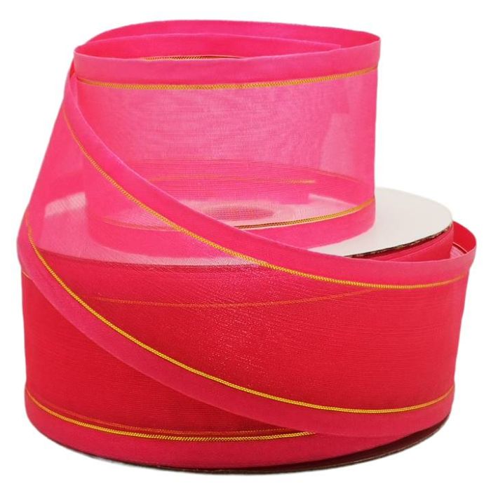 2 Rollos de Listón de Organza con Orilla Metálica Fiusha-Oro #12 con 50 m c/u Ancho:50 mm