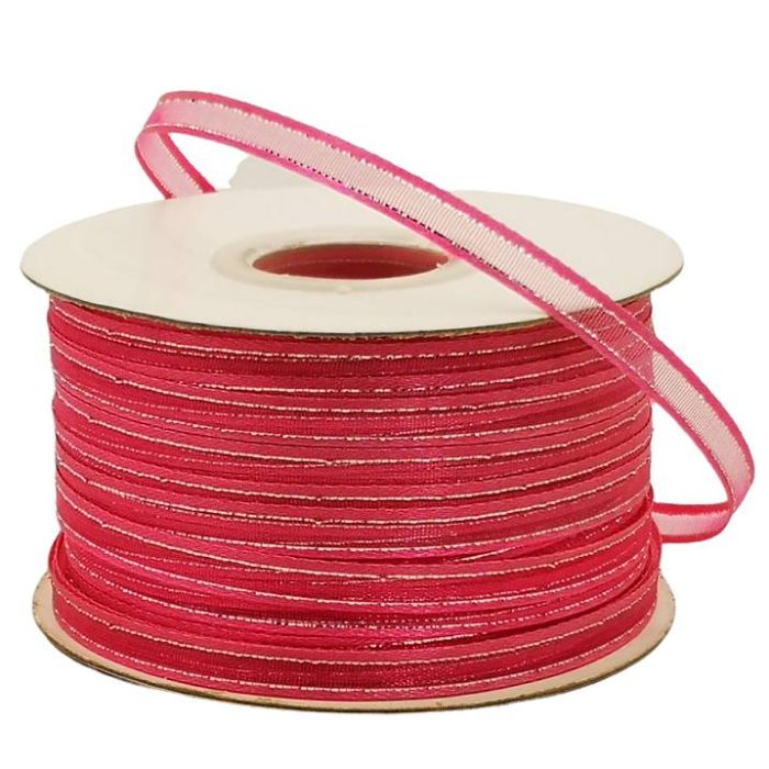 Rollo de Listón de Organza con Orilla Metálica Fiusha-Plata #1 con 100 m Ancho:6 mm
