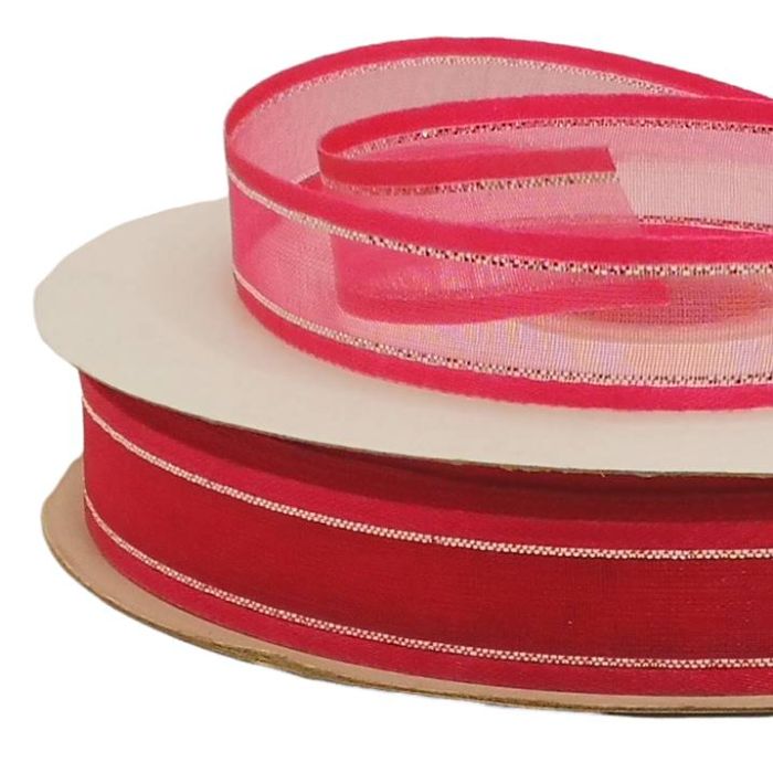 2 Rollos de Listón de Organza con Orilla Metálica Fiusha-Plata #3 con 50 m c/u Ancho:16 mm