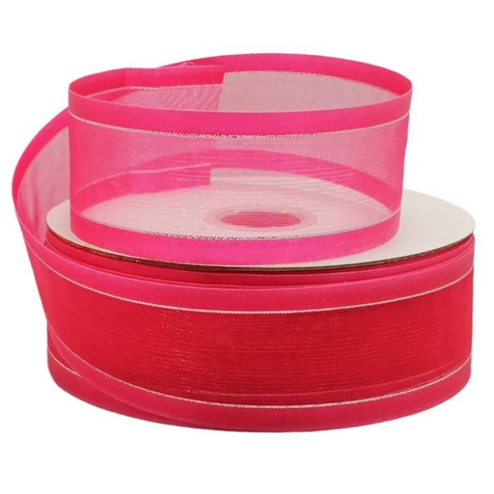 2 Rollos de Listón de Organza con Orilla Metálica Fiusha-Plata #9 con 50 m c/u Ancho:38 mm