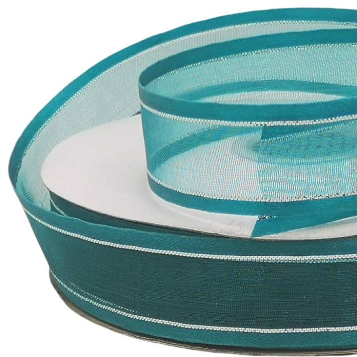 2 Rollos de Listón de Organza con Orilla Metálica Jade-Plata #5 con 50 m c/u Ancho:22 mm