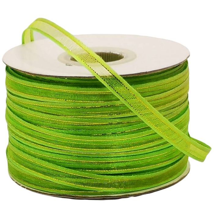 Rollo de Listón de Organza con Orilla Metálica Manzana-Oro #1 con 100 m Ancho:6 mm