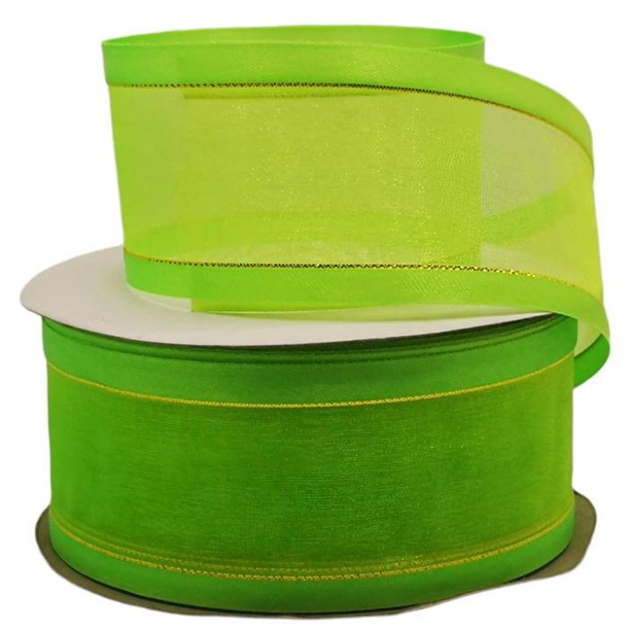 2 Rollos de Listón de Organza con Orilla Metálica Manzana-Oro #12 con 50 m c/u Ancho:50 mm