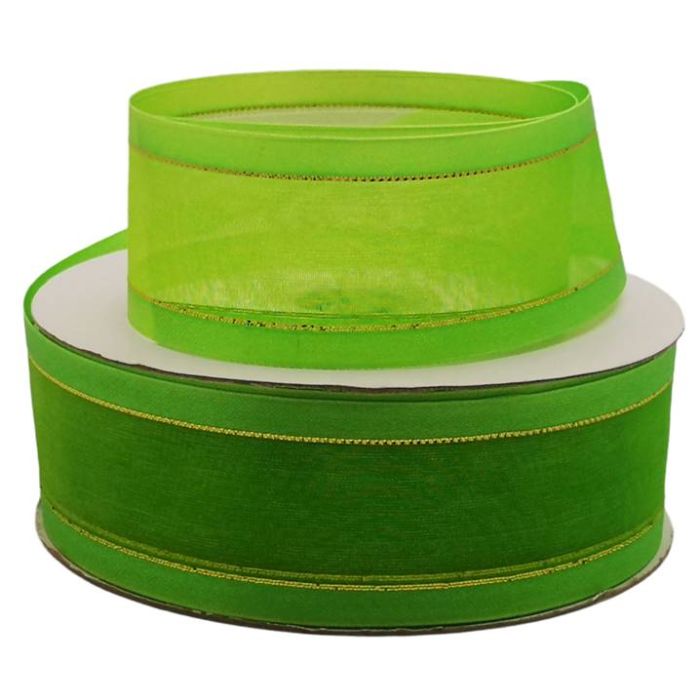 2 Rollos de Listón de Organza con Orilla Metálica Manzana-Oro #9 con 50 m c/u Ancho:38 mm